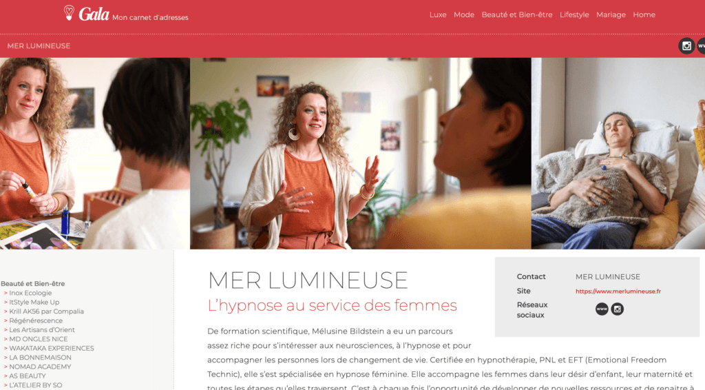 Sélectionnée dans « Mon carnet d’adresses » de Gala, dans le dossier Bien-Être de la rentrée